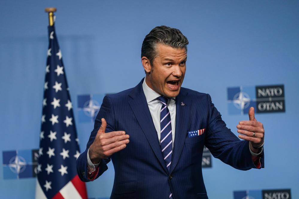 10月15日,美國(guó)國(guó)防部長(zhǎng)赫格塞思在比利時(shí)布魯塞爾出席北約防長(zhǎng)會(huì)議。新華社記者彭子洋攝