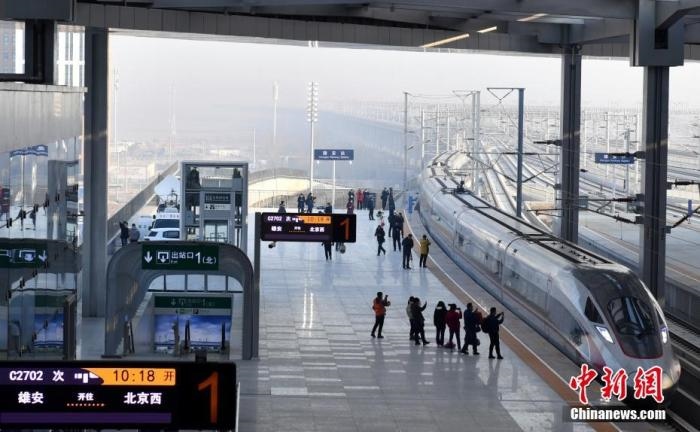 12月27日,一輛復(fù)興號動車組列車駛?cè)胄郯舱?。中新社記者韓冰攝