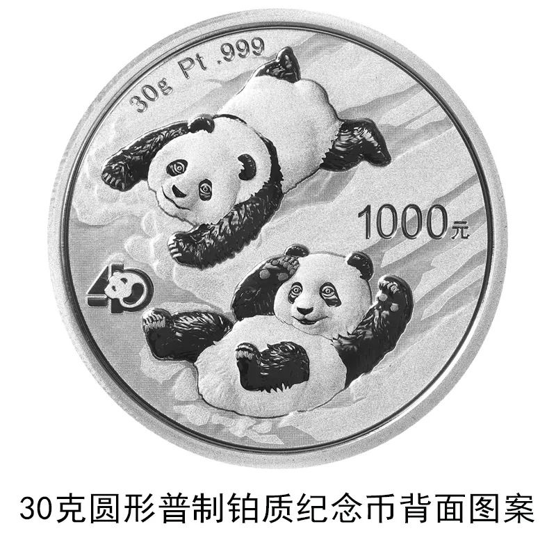 該套貴金屬紀念幣正面圖案均為北京天壇祈年殿,并刊國名、年號;背面圖案均為大熊貓滑雪嬉戲場景,輔以“熊貓金幣發(fā)行40周年標識”元素,并刊面額、重量及成色。