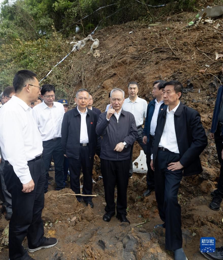 受黨中央、國務院委派,中共中央政治局委員、國務院副總理劉鶴和國務委員王勇率有關部門負責同志3月22日凌晨抵達廣西梧州,指導“3·21”東航MU5735航空器飛行事故現(xiàn)場救援、善后處置及事故原因調查工作。22日上午,劉鶴、王勇來到事故現(xiàn)場,實地查看環(huán)境條件,仔細了解救援工作進展,并看望慰問搜救人員。新華社記者