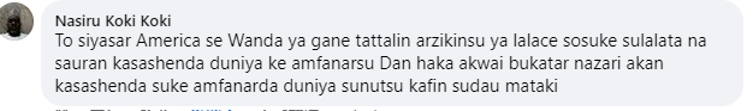 尼日利亞網(wǎng)友納斯魯(Nasiru Koki Koki)留言:“正是美國自身經(jīng)濟的衰退,使得它如此迫切地想要阻止其他國家的經(jīng)濟發(fā)展,面對美國的挑釁,中國應采取審慎的態(tài)度?!?/p>