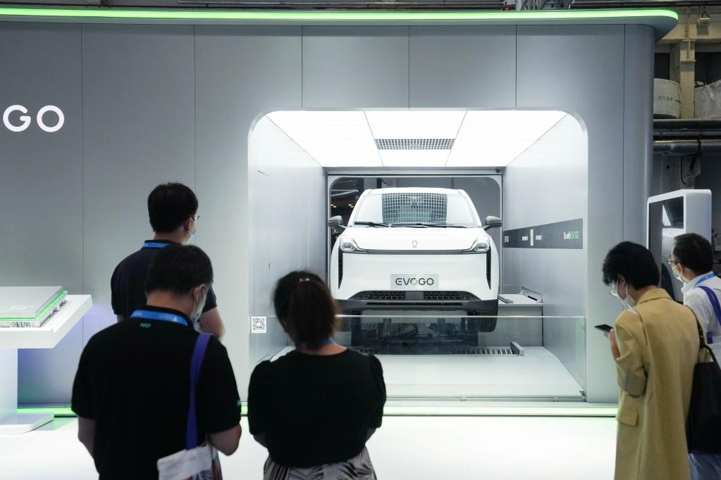 在電池制造企業(yè)寧德時(shí)代的展臺(tái),一臺(tái)為新能源汽車更換電池的換電站正進(jìn)行演示?!跋Mㄟ^最新研發(fā)的換電產(chǎn)品,讓電池成為共享資產(chǎn),化解續(xù)航里程、補(bǔ)電便捷性和購置使用成本三大電動(dòng)車用戶痛點(diǎn)?!睂幍聲r(shí)代相關(guān)負(fù)責(zé)人表示,未來換電模式將和充電模式互為補(bǔ)充,共同支撐消費(fèi)者的補(bǔ)能需求。