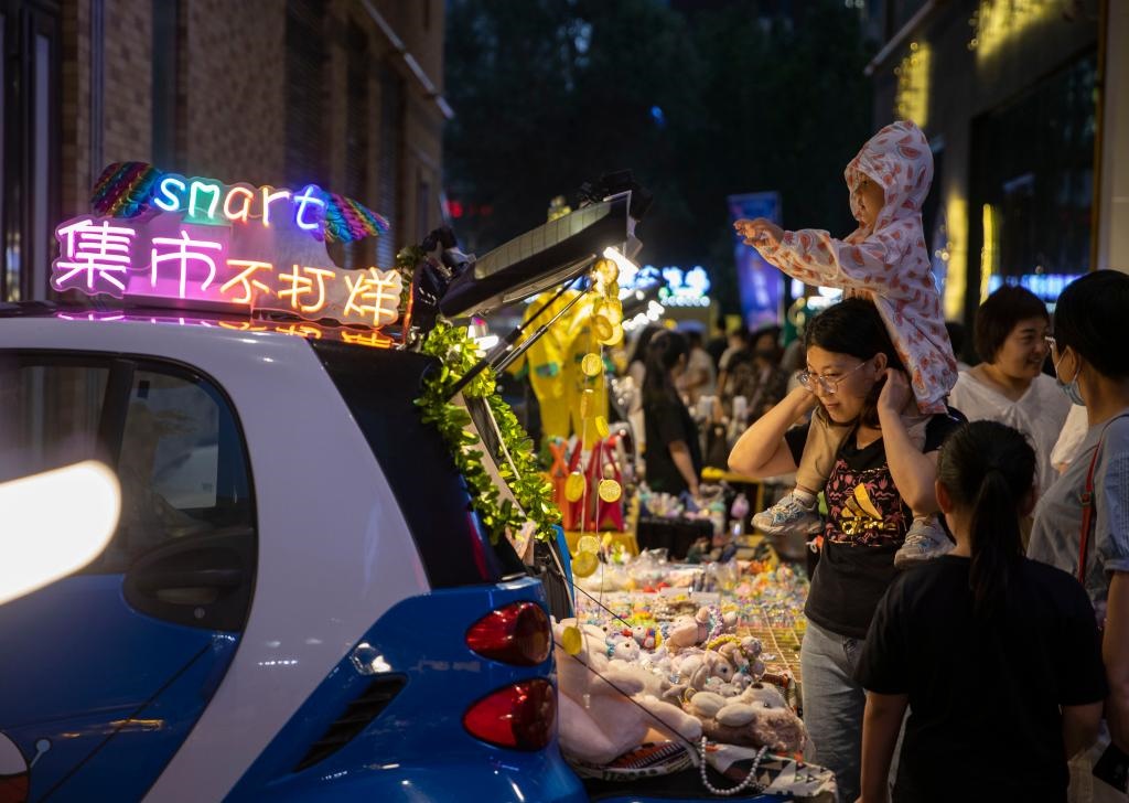 7月2日,游客在寧夏銀川市建發(fā)大閱城特色夜市購(gòu)物。當(dāng)日,第三屆“寧夏夜綻生活節(jié)”在寧夏銀川市建發(fā)大閱城中街拉開帷幕,吸引眾多游客前來體驗(yàn)城市夜生活。新華社記者楊植森攝