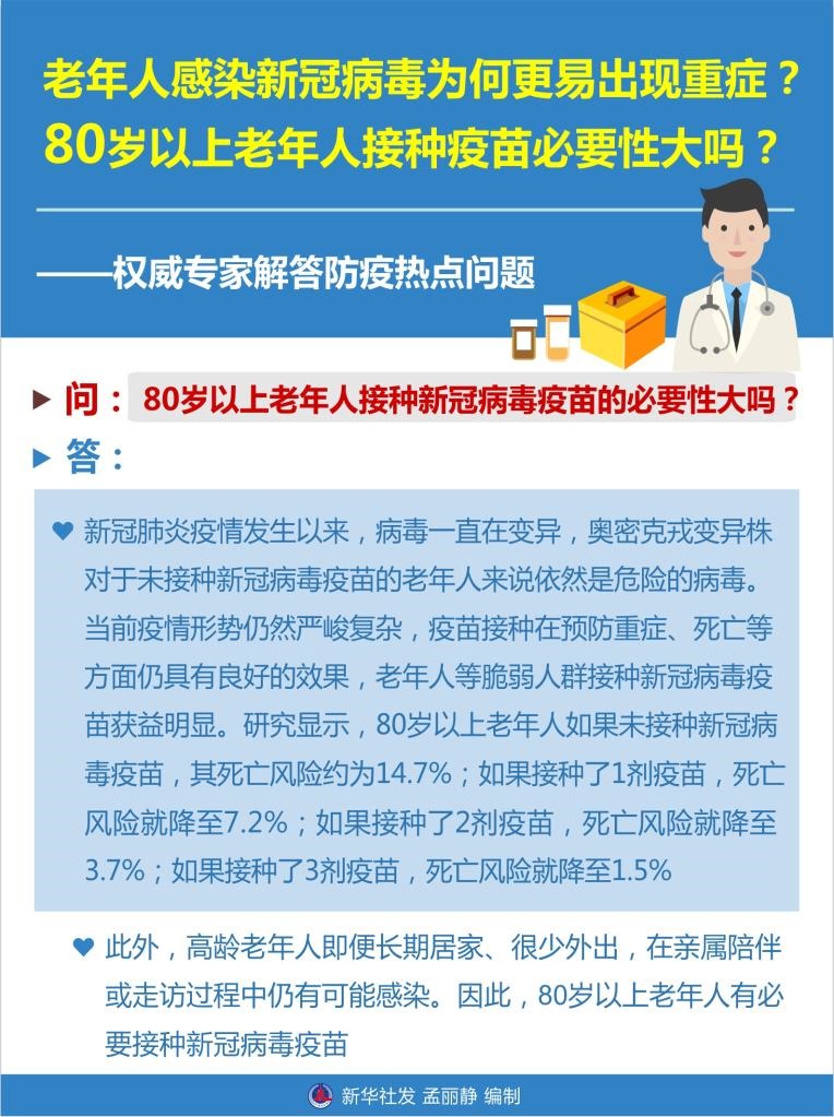 2.問(wèn):80歲以上老年人接種新冠病毒疫苗的必要性大嗎?
