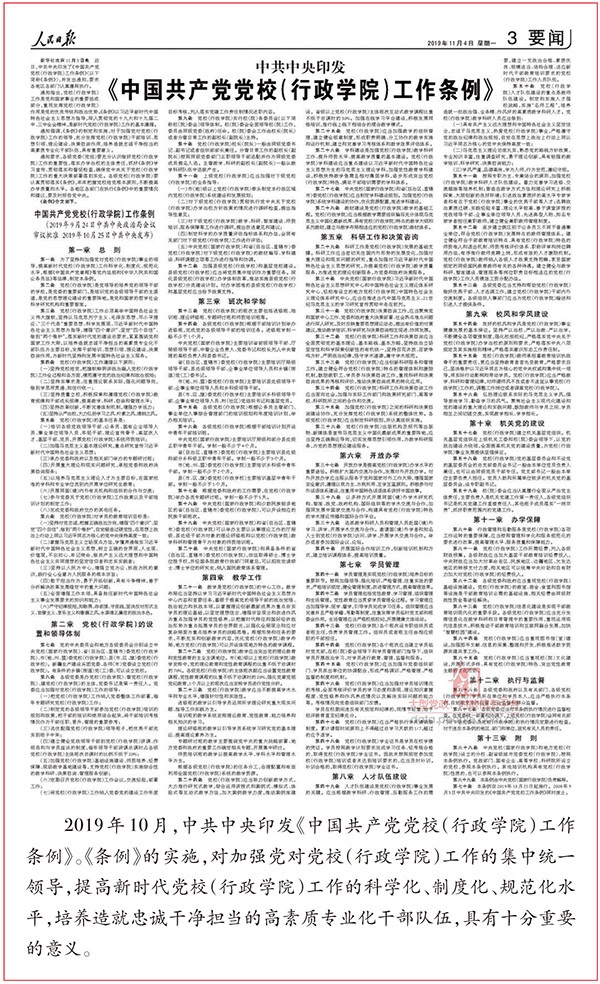 黨校事業(yè)是黨的事業(yè)的重要組成部分。從中央到地方建立黨校體系,專門教育培訓干部,是我們黨的一大政治優(yōu)勢。黨的十八大以來,習近平總書記高度重視黨校工作。從為黨內“關鍵少數(shù)”講授“開班第一課”,與縣委書記研修班學員座談交流,到連續(xù)6次出席中青年干部培訓班開班式并發(fā)表重要講話;從出席全國黨校工作會議并發(fā)表重要講話,指引做好新形勢下的黨校工作,到部署深化黨和國家機構改革,組建新的中央黨校(國家行政學院),制定、實施《中國共產黨黨校(行政學院)工作條例》,習近平總書記對黨校工作傾注了大量心血。在總書記親切關懷下,中央黨校和全國各級黨校牢記“黨校姓黨”這個立校之本,不斷提高辦學質量和水平,在為黨育才、為黨獻策上作出了新的貢獻。