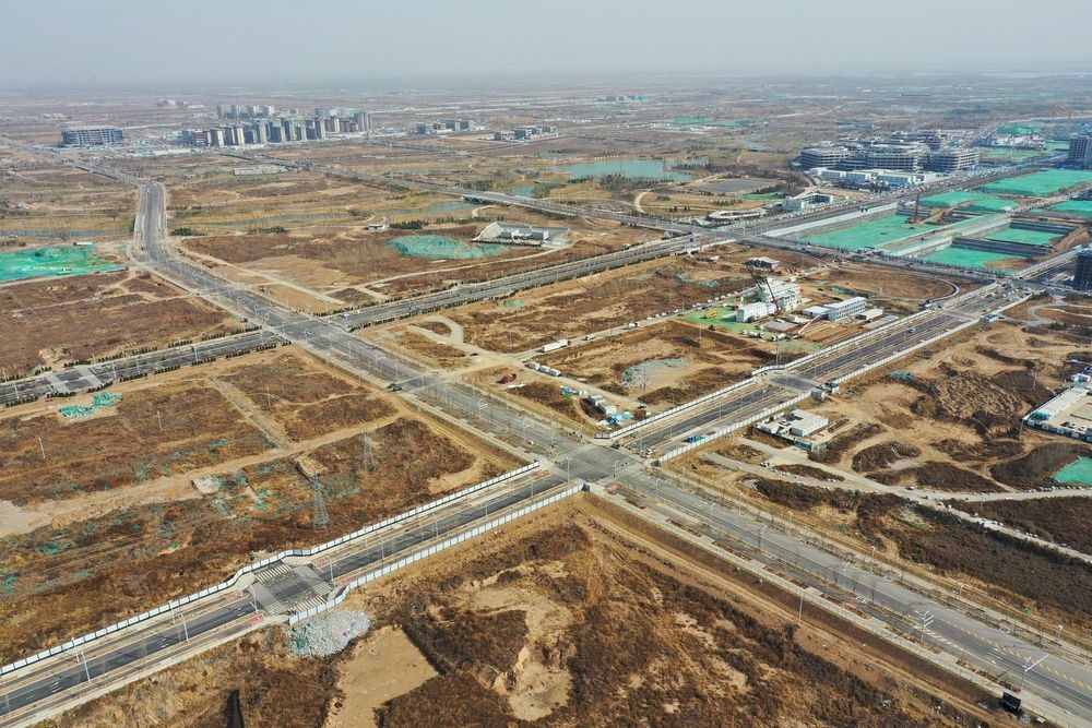這是雄安新區(qū)啟動(dòng)區(qū)內(nèi)的路網(wǎng)(3月24日攝,無(wú)人機(jī)照片)。