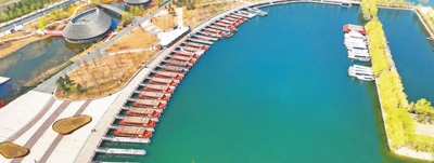 雄安新區(qū)白洋淀旅游碼頭,游船停靠在岸邊。 史自強 周 博攝影報道