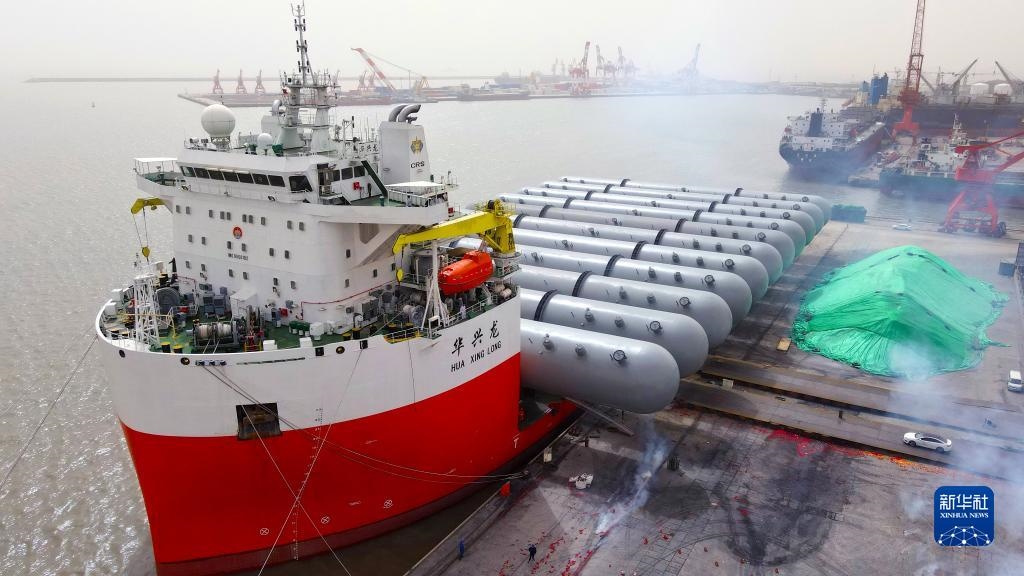 當(dāng)日,由位于山東省榮成市的一家重工企業(yè)制造的超大型石油液化氣儲罐啟運(yùn)安哥拉。這些大型“巨無霸”石油液化氣儲罐每臺直徑8米、長80米、重約480噸。據(jù)了解,2022年以來,山東省榮成市從石島港向“一帶一路”國家出口大型裝備160多臺(套)。新華社發(fā)(楊志禮攝)