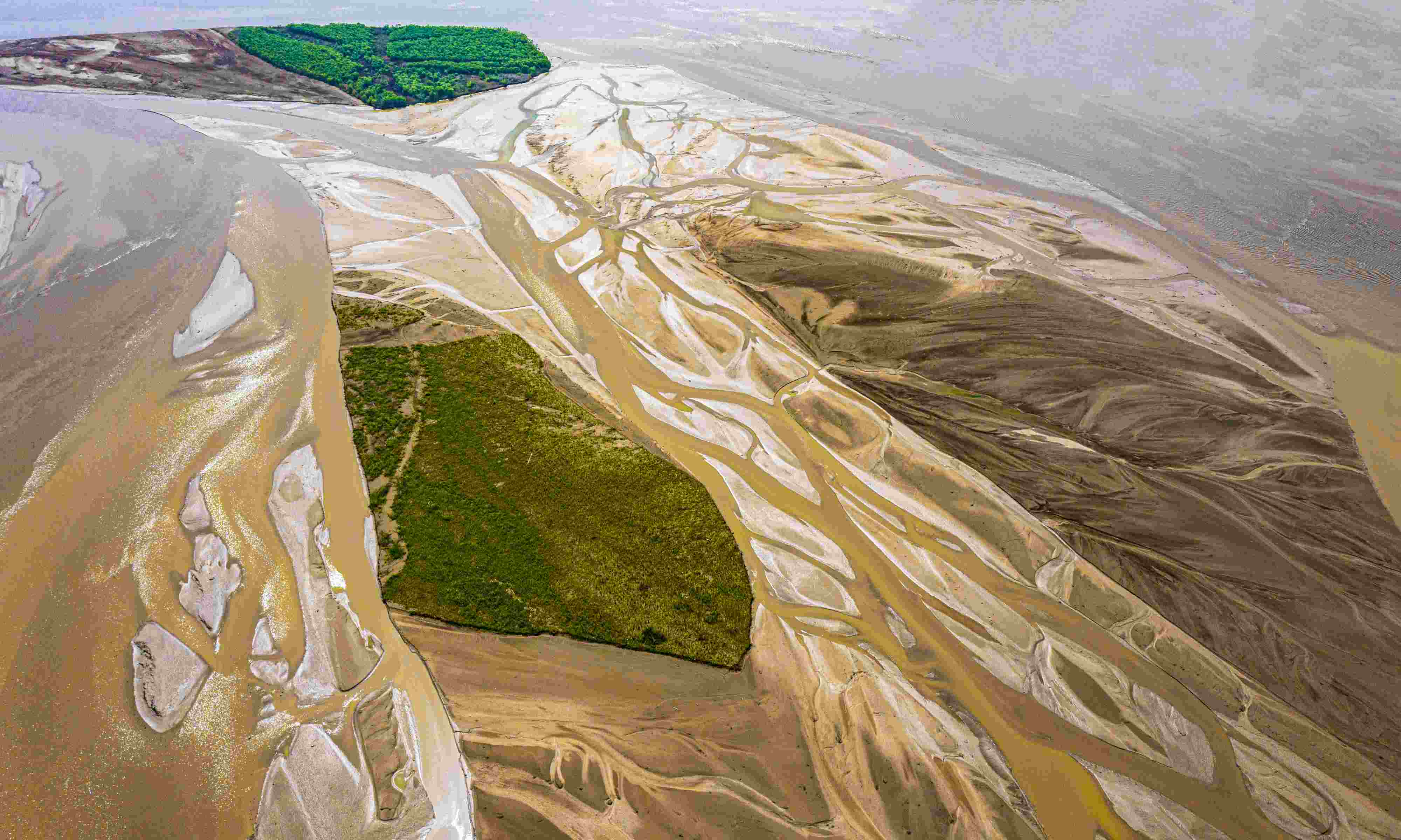 4月16日,山西運(yùn)城,由于黃河上游降雨和庫區(qū)泄水水量增加,黃河永濟(jì)段河床在水流沖刷下河汊縱橫,高空俯瞰宛若“大地血脈”。 視覺中國