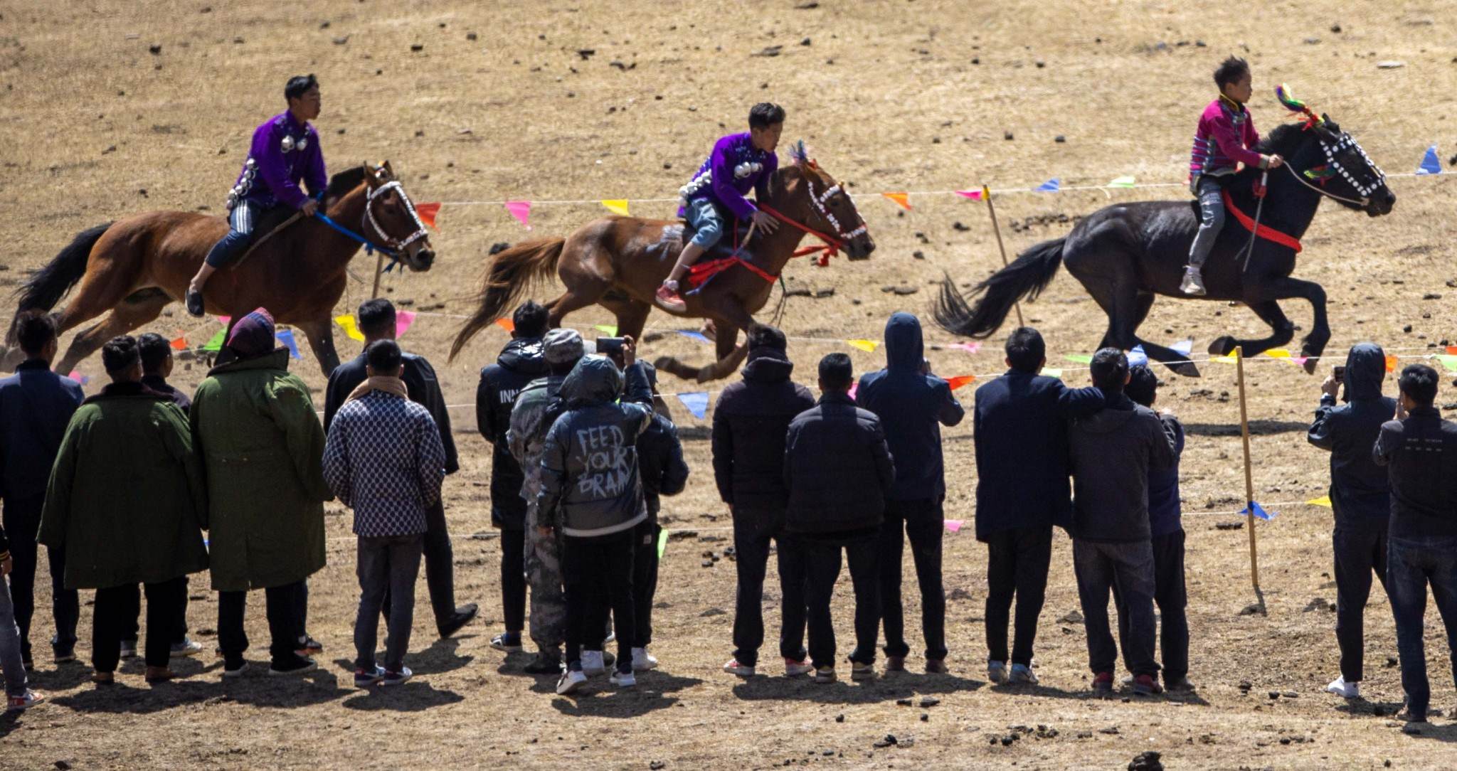 2023年4月25日,四川涼山,普格縣黎安鄉(xiāng)海口梁子,傳統(tǒng)的彝族賽馬比賽拉來帷幕。視覺中國
