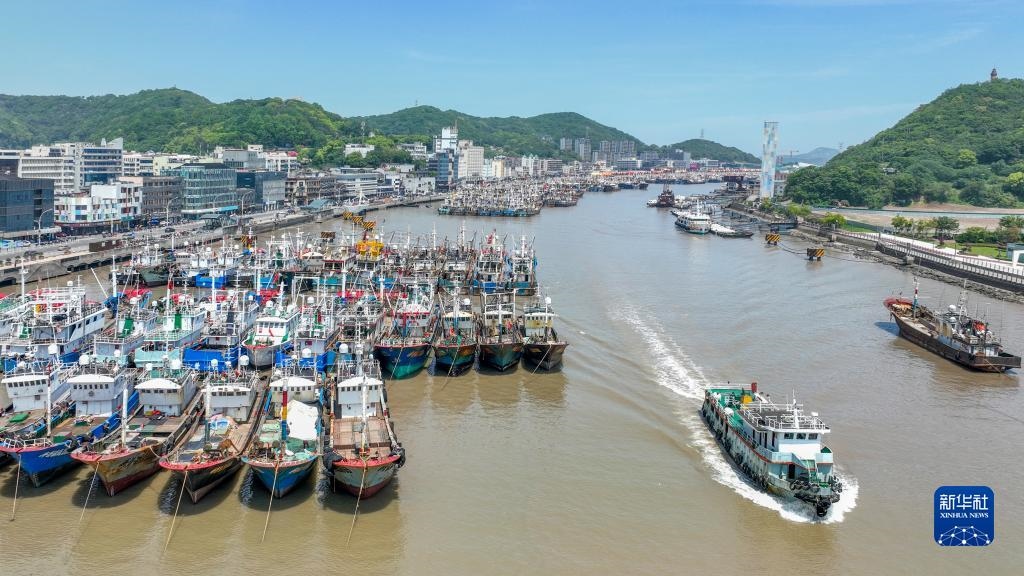 4月30日,準(zhǔn)備休漁的漁船停泊在福建省福州市連江縣苔菉鎮(zhèn)北茭村漁港(無人機(jī)照片)。