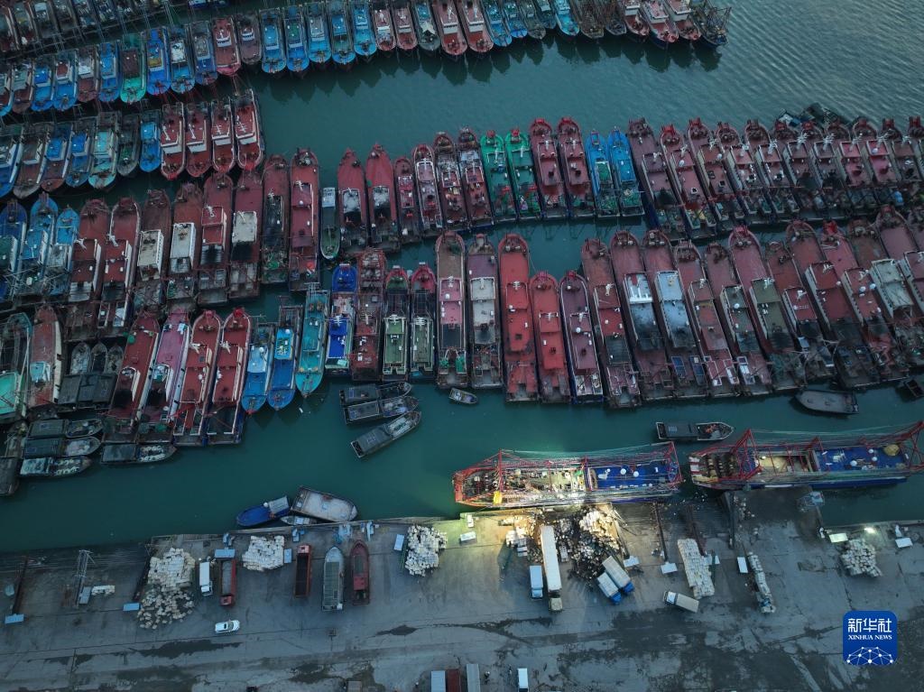 4月30日清晨,在浙江省舟山市普陀區(qū)沈家門漁港,漁船陸續(xù)進(jìn)港準(zhǔn)備休漁(無人機(jī)照片)。