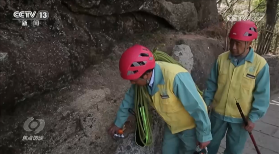 李培生:“放繩索是我們的本職工作,我們要把本職工作做好,不管哪里有垃圾,放得再長(zhǎng)、再險(xiǎn)的地方,我們只要看到垃圾,就必須去撿起來(lái),我們要把黃山保護(hù)好?!?/p>