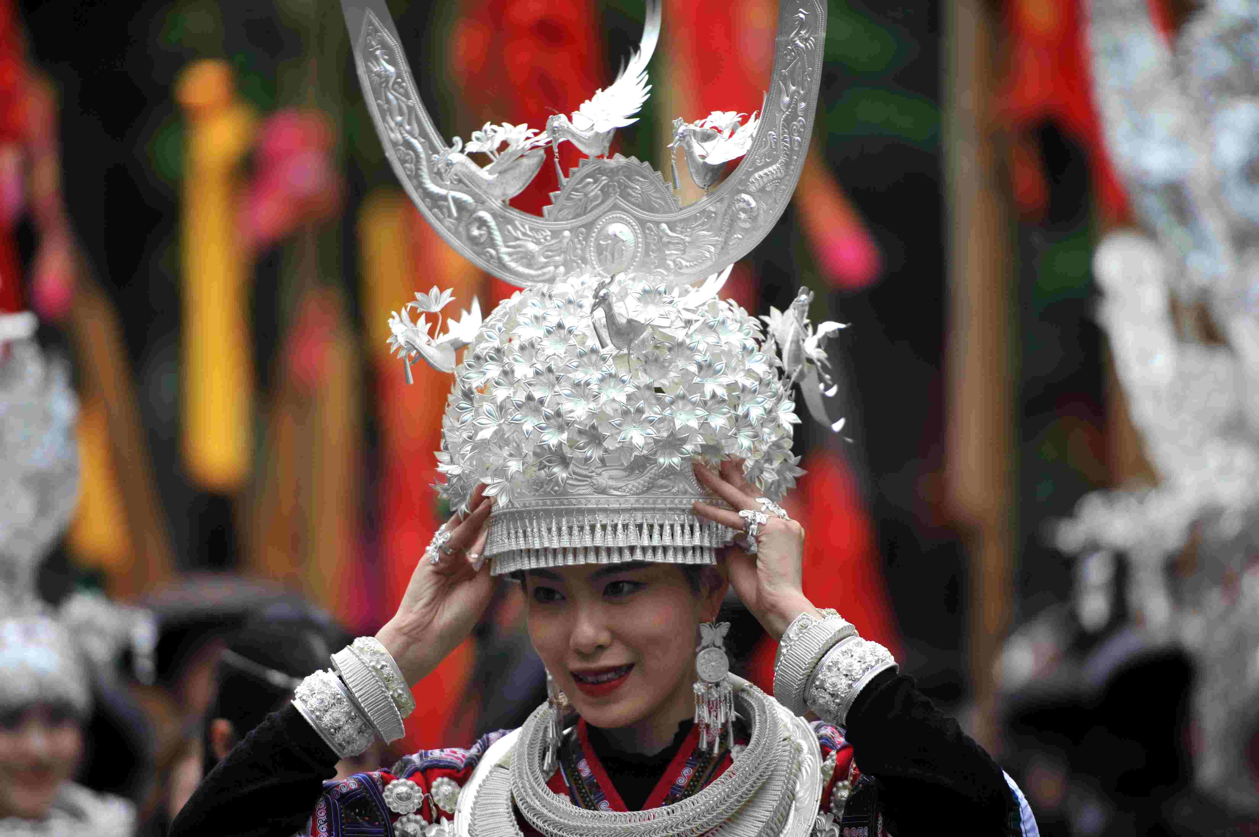 貴州省臺江縣苗族文化豐富多彩厚重,其服飾是苗族文化的重要載體,苗族女子服飾以靚麗的銀飾、精美的刺繡和獨特的審美文化內(nèi)涵而被稱為“穿在身上的史書”,成為識別苗族9大支系的重要標識,具有極高的藝術、觀賞和收藏價值。 (寧堅)