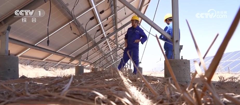 央視網(wǎng)消息:在寧夏中衛(wèi)市騰格里沙漠里,成千上萬塊藍(lán)色光伏板整齊排列,隨著太陽的運轉(zhuǎn)逐日追光,每年可以發(fā)電17億度。這里的工作人員被稱為“追日人”?!拔逡弧奔倨冢麄円廊粓允卦诠ぷ鲘徫簧?。