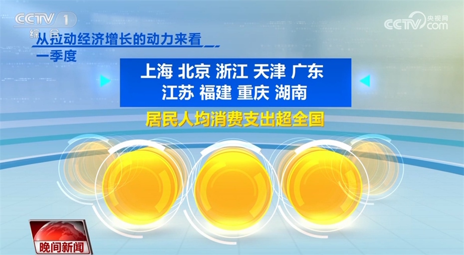 此外,各地經(jīng)濟發(fā)展也呈現(xiàn)回升向好態(tài)勢。目前,全國31個?。▍^(qū)、市),已經(jīng)全部公布一季度的經(jīng)濟運行數(shù)據(jù)。從GDP增速來看,31個省(區(qū)、市)中有23個省份跑贏全國一季度GDP平均增速4.5%,從地區(qū)GDP總量看,有12個省份超1萬億,廣東超過了3萬億。從拉動經(jīng)濟增長的動力來看,一季度,上海、北京、浙江、天津、廣東、江蘇、福建、重慶、湖南9省份,居民人均消費支出超全國。