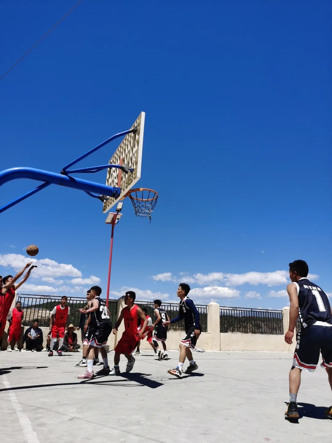 在四川大涼山的籃球場上