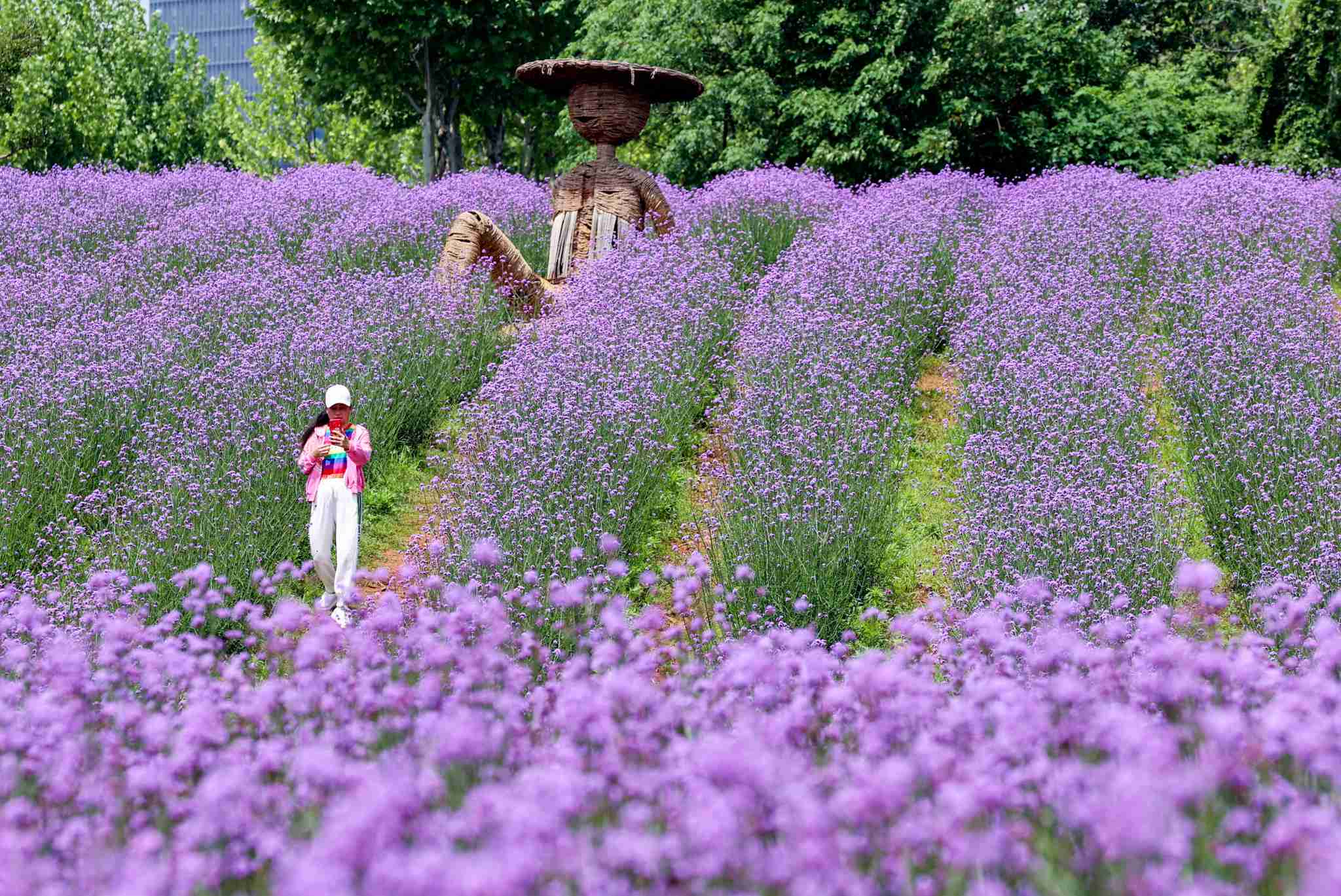 近日,湖北武漢光谷中央生態(tài)大走廊最北端的九峰一路,馬鞭草競(jìng)相綻放,吸引不少市民和游客來(lái)此賞花。視覺(jué)中國(guó)