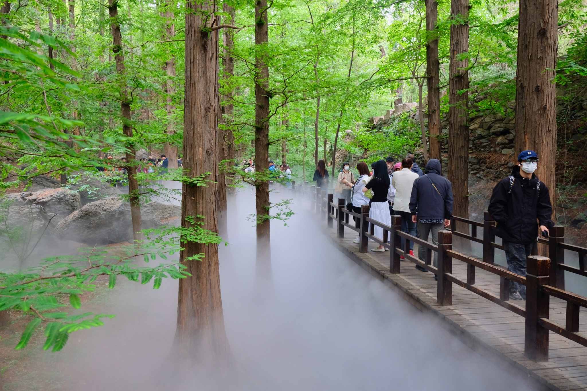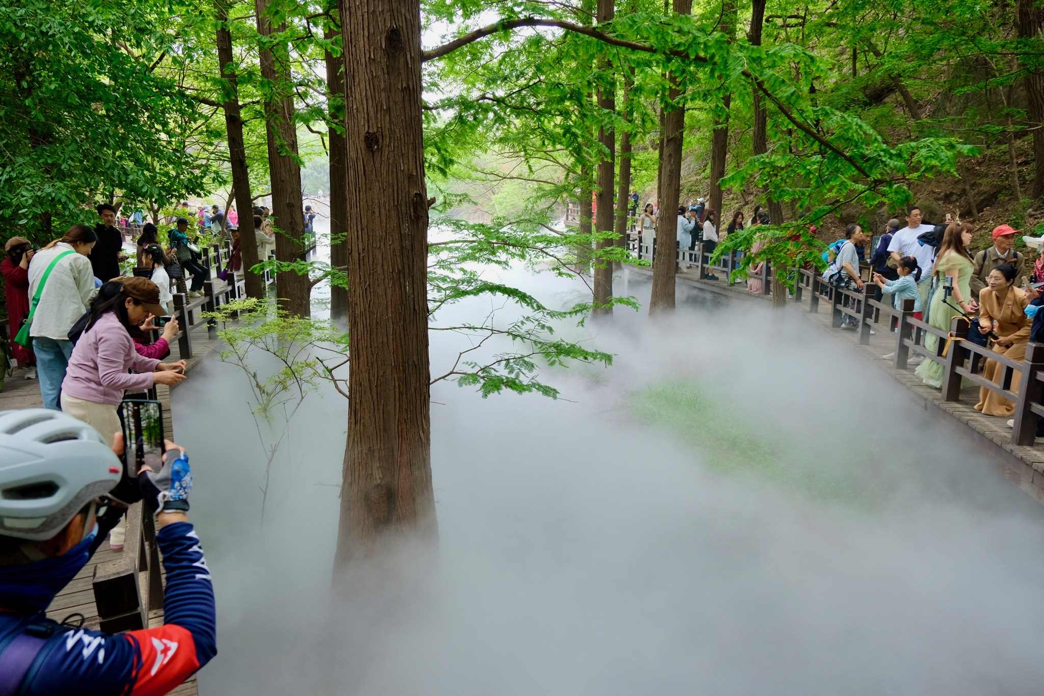 2023年5月6日,北京,立夏時(shí)節(jié),萬(wàn)物繁茂,國(guó)家植物園櫻桃溝景區(qū)“云霧繚繞”宛若“仙境”。視覺(jué)中國(guó)