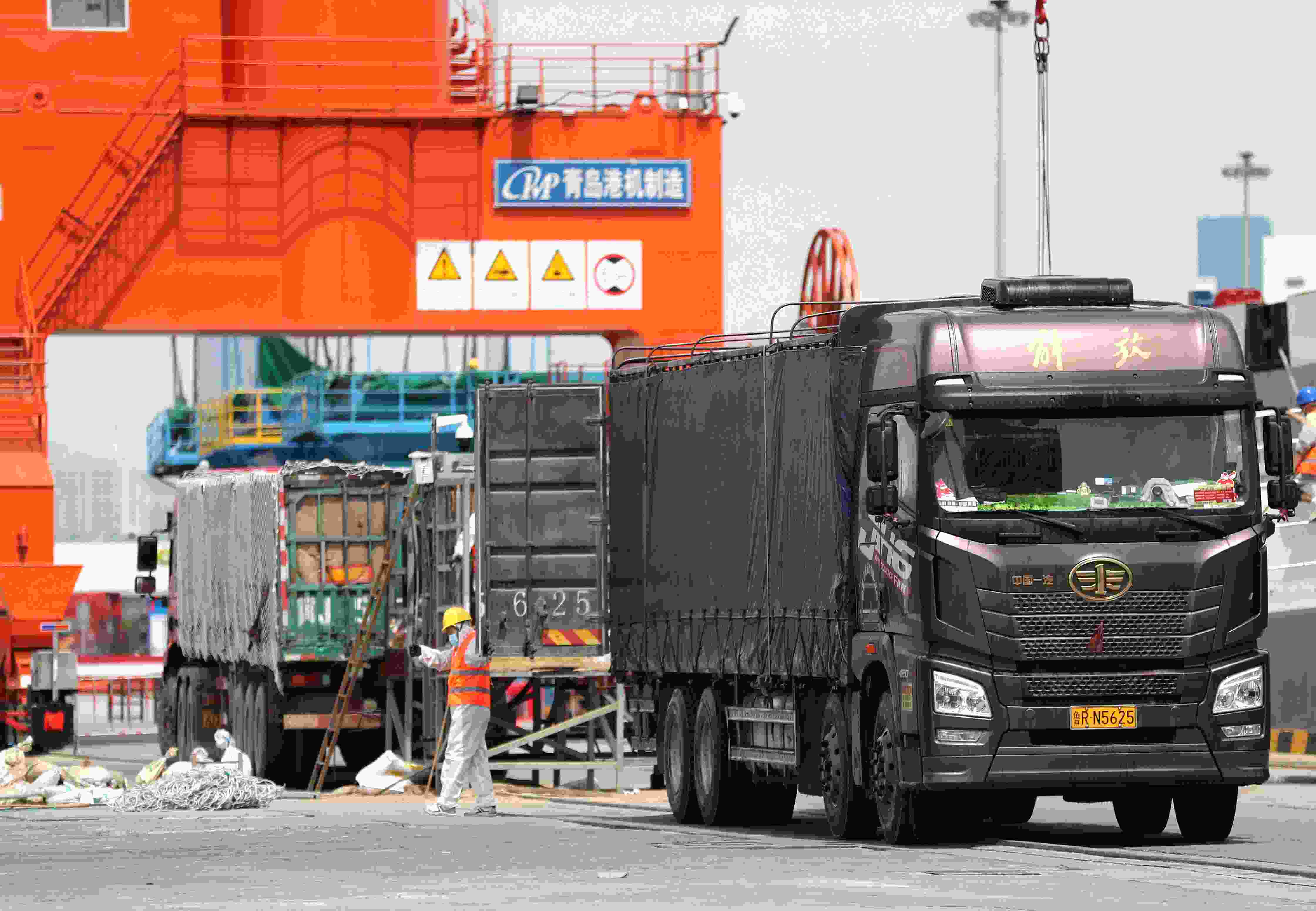 當(dāng)日,在山東港口青島港前灣集裝箱碼頭, “加洛韋”輪在黃島邊檢部門的保障下,滿載的3000余頭活牛,經(jīng)過裝卸轉(zhuǎn)運(yùn),全部進(jìn)入指定隔離場(chǎng),進(jìn)入隔離檢驗(yàn)期。