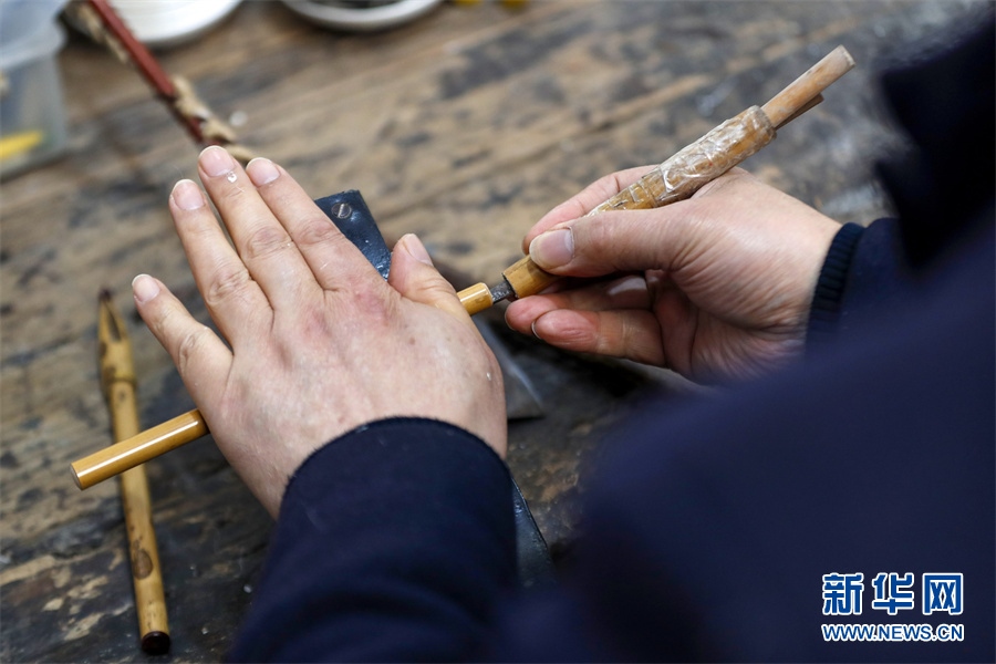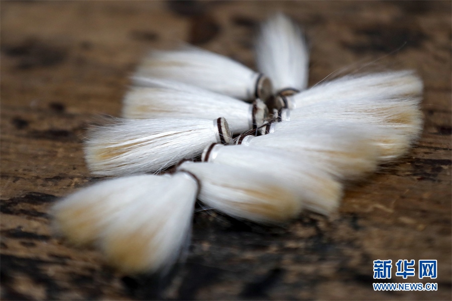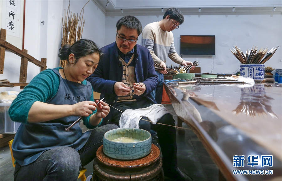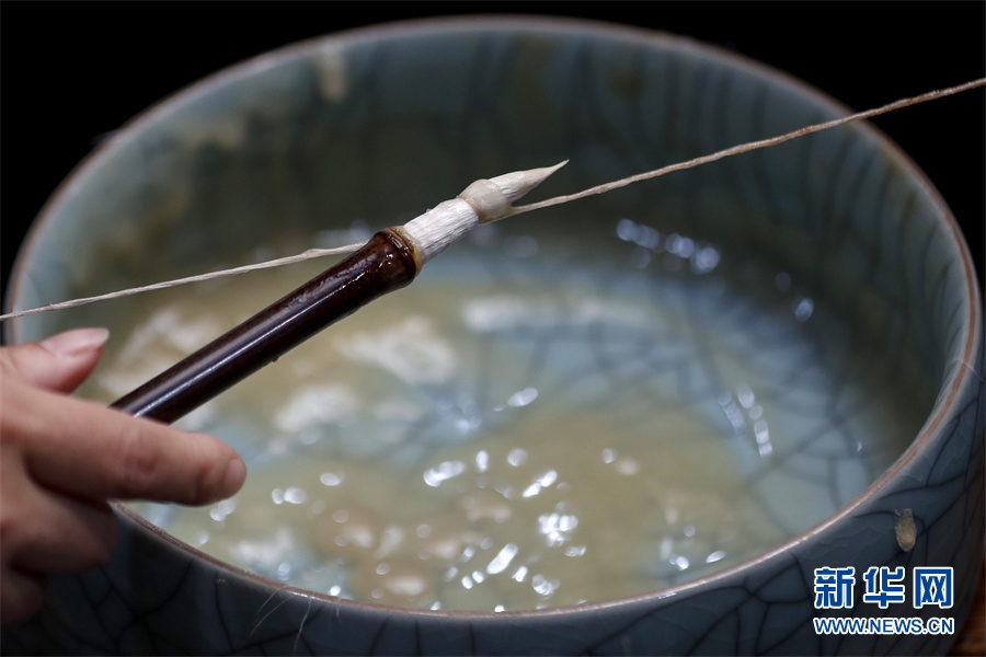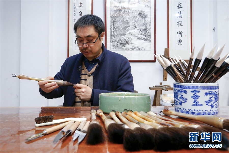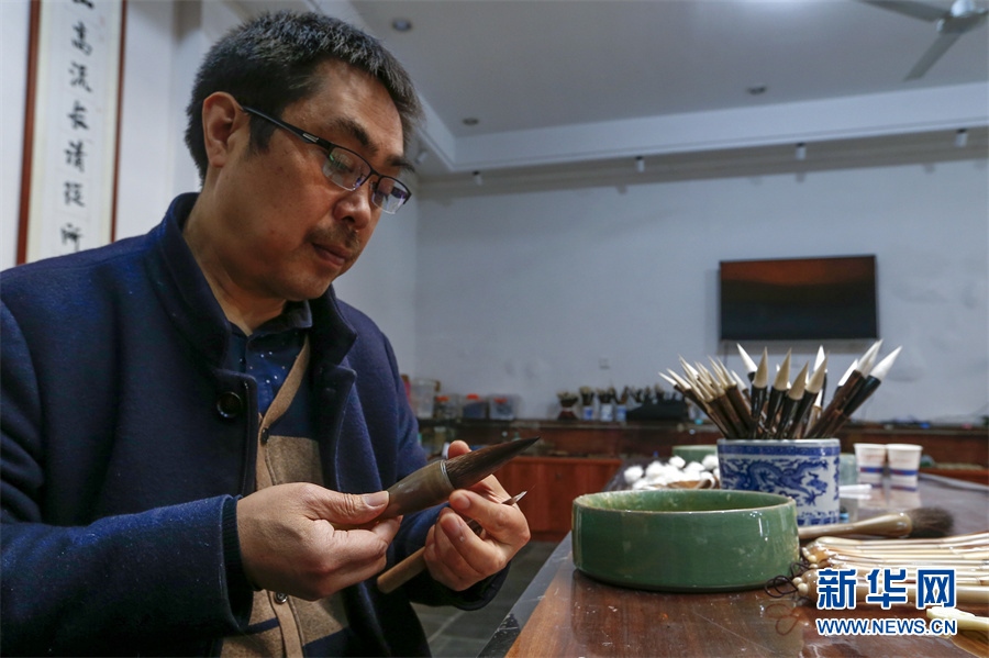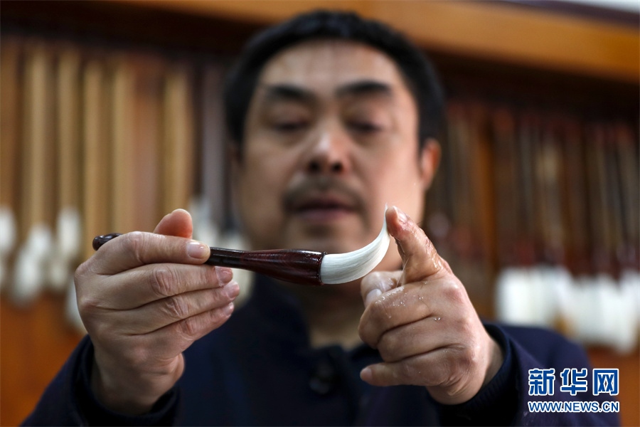 一支好的徽筆,不僅要保留傳統(tǒng)工藝,且要在原基礎上不斷創(chuàng)新、改良。楊文尤其重視書畫家對筆的使用反饋:“因為他們對用筆最挑剔,而且現代書畫家創(chuàng)作方式和作品不斷創(chuàng)新,對毛筆也有新的要求,他們提出的要求我總是盡力去滿足,也使得制筆技藝進一步得到了提高?!? 新華網發(fā)(施亞磊 攝)
