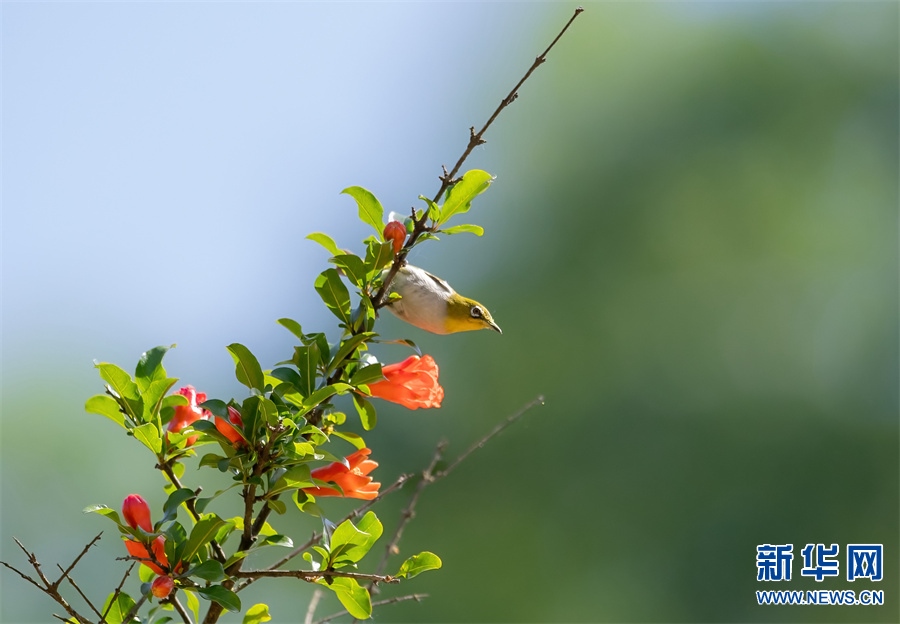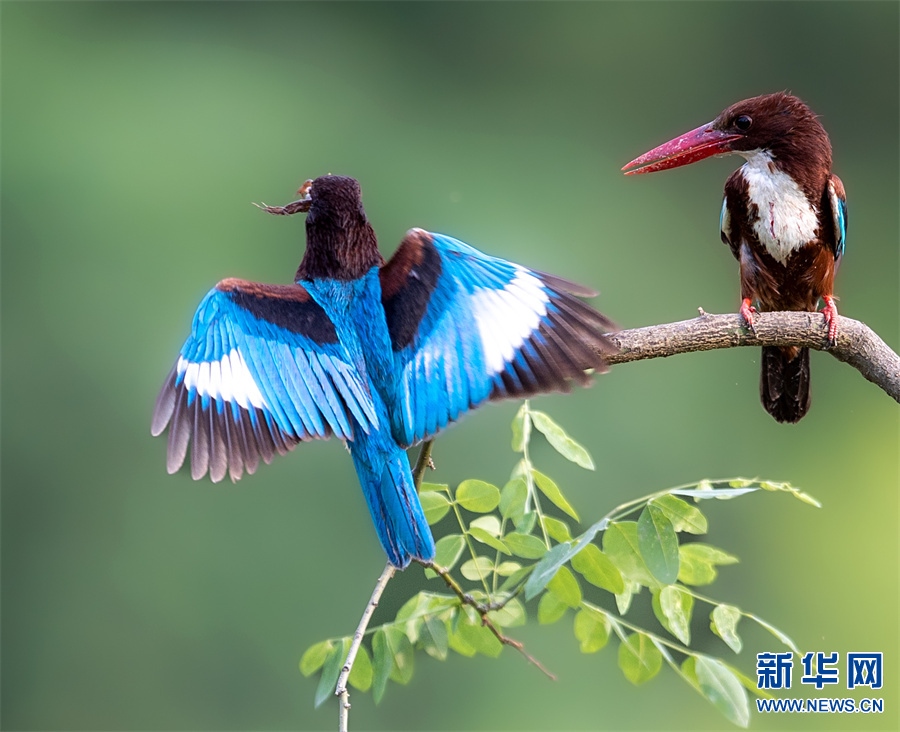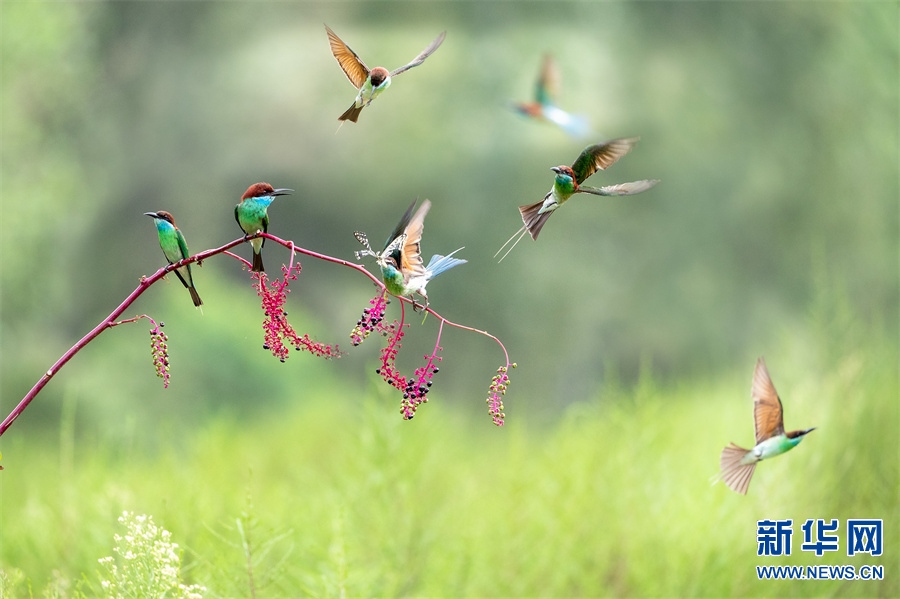河南省信陽市新縣位于南北氣候過渡帶,地跨長江、淮河兩大流域,植被覆蓋率達(dá)95%,森林覆蓋率達(dá)76.7%。得天獨厚的自然生態(tài)環(huán)境,吸引了藍(lán)喉蜂虎、藍(lán)翡翠、戴勝等眾多鳥類在這里“安營扎寨”,繪出一幅生動和諧的自然畫卷。新華網(wǎng)發(fā)(闞敦傳 攝)