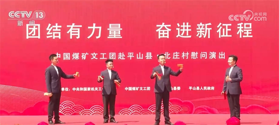 5月11日至12日,中國(guó)煤礦文工團(tuán)走進(jìn)河北省平山縣西柏坡鎮(zhèn)北莊村,開(kāi)展以“團(tuán)結(jié)有力量 奮進(jìn)新征程”為主題的慰問(wèn)演出。伴隨著喜慶歡快的樂(lè)曲,演出在舞蹈《歡騰秧歌》中拉開(kāi)帷幕,老、中、青三代藝術(shù)家們登臺(tái)獻(xiàn)藝。演出除主會(huì)場(chǎng)外,還設(shè)立了分會(huì)場(chǎng),精彩的節(jié)目受到了觀眾的歡迎。