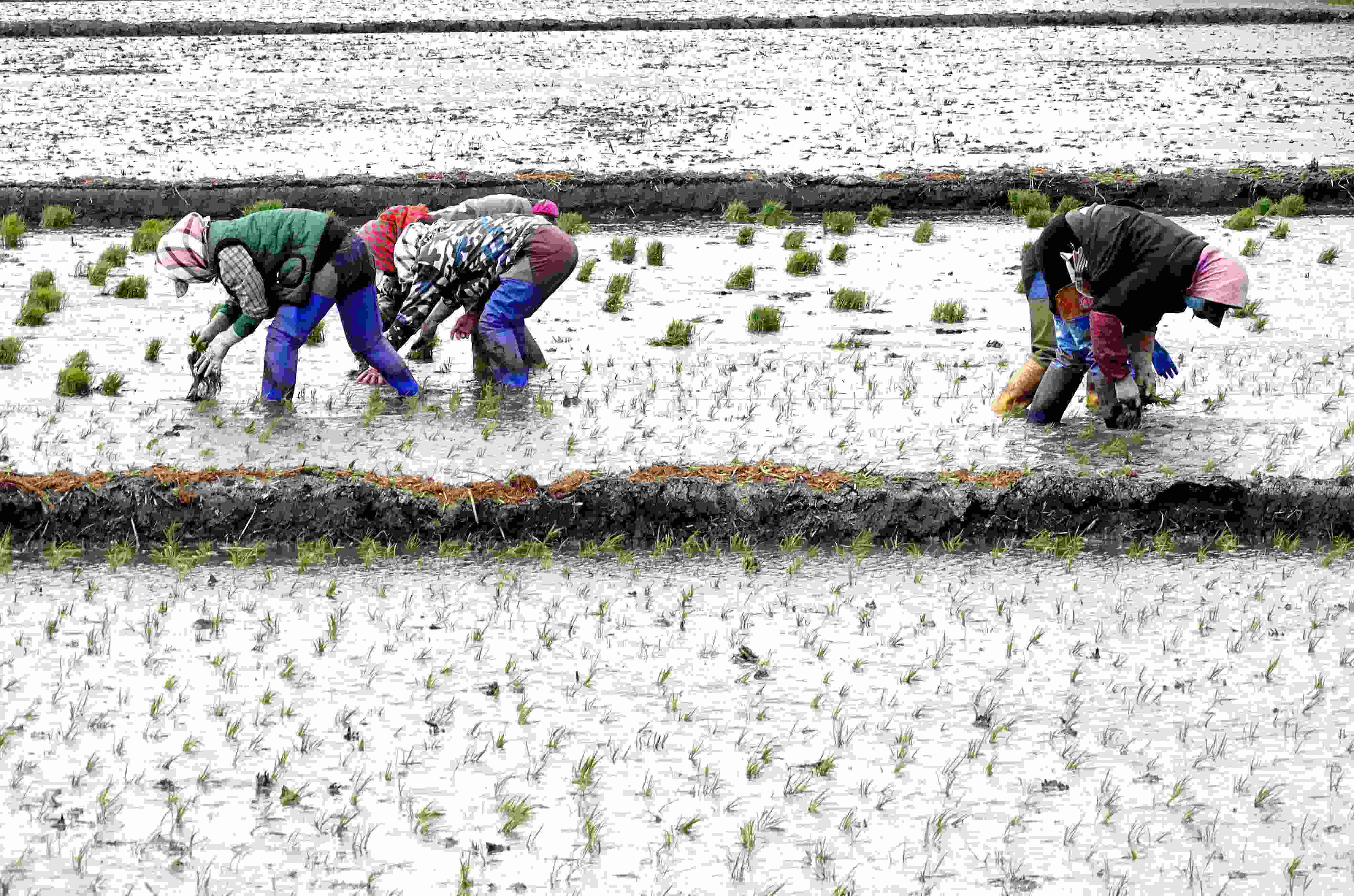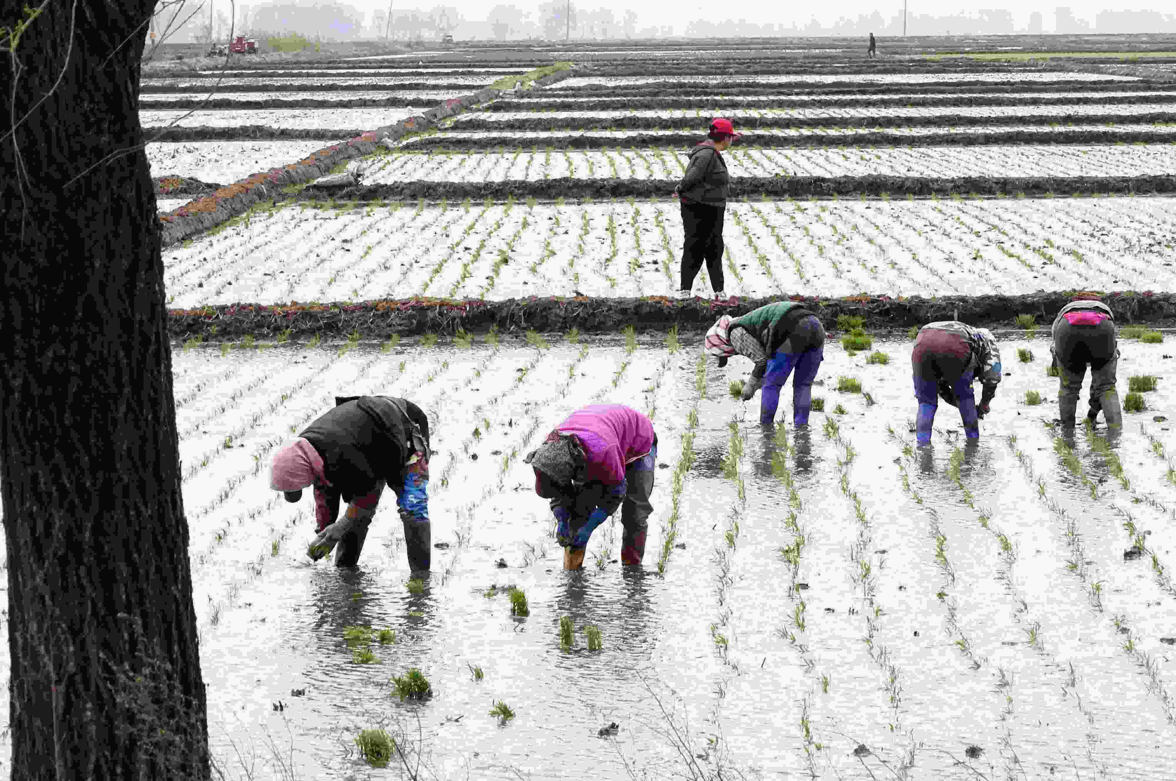 五月中旬,黑龍江省五常市,當(dāng)?shù)剞r(nóng)戶搶抓農(nóng)時(shí)開(kāi)展夏季插秧大生產(chǎn),田間地頭一派繁忙景象。 (吳胡荼 攝)