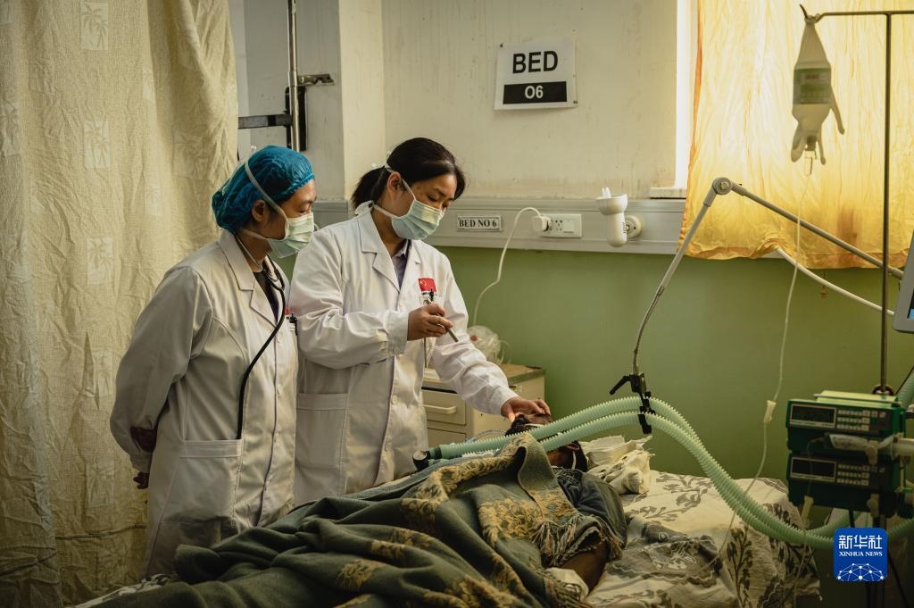 5月9日,在厄立特里亞首都阿斯馬拉的奧羅特醫(yī)院,醫(yī)療隊神經(jīng)外科醫(yī)生王玉莉(右)和呼吸內(nèi)科醫(yī)生高崴崴在ICU病房會診。