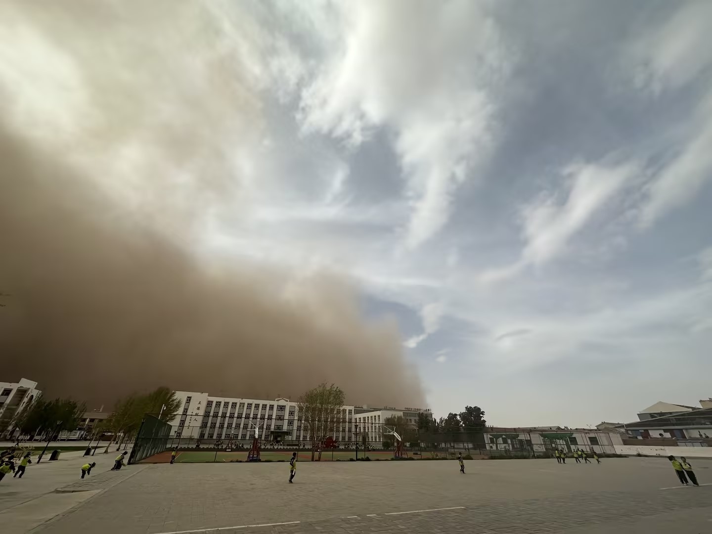 內蒙古二連浩特出現(xiàn)強沙塵暴 沙墻滾滾而來