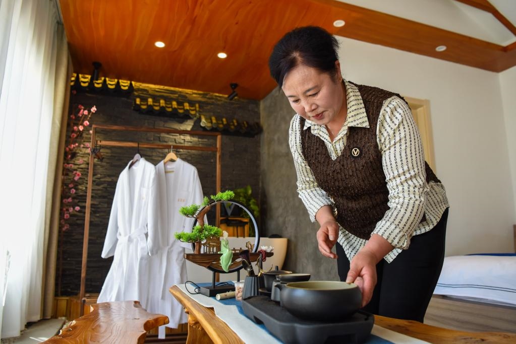 “當(dāng)了一輩子農(nóng)民,沒想過從土地之外還能賺上錢?!睏钣裉m坦言,起初她并不熱心于張羅民宿生意,但2021年開始,村里游客漸增,趕上夏季旅游旺季,大量游客前往民宿消費(fèi),為她帶來每年約5萬元旅游收入。眼下,桃花村已打造22家主題民宿庭院,帶動(dòng)本地就業(yè)40多人,全村人均年增收2000元。