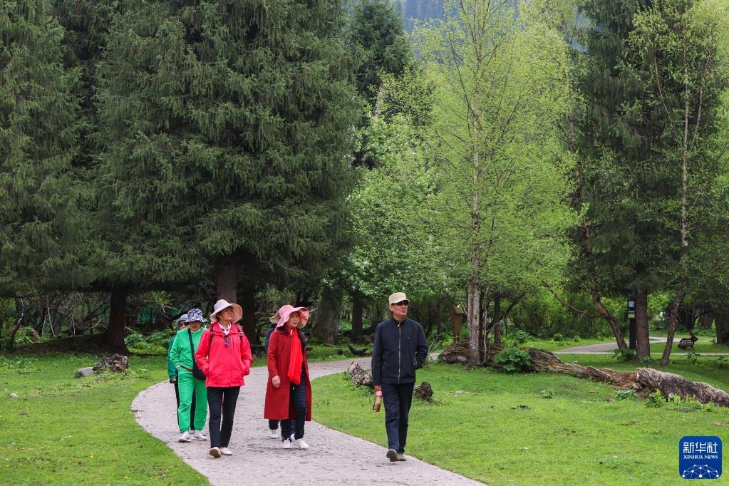 5月20日,游客在位于新疆新源縣的那拉提旅游風(fēng)景區(qū)觀光。