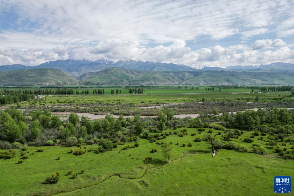 5月20日拍攝的那拉提河谷草原風(fēng)光(無(wú)人機(jī)照片)。
