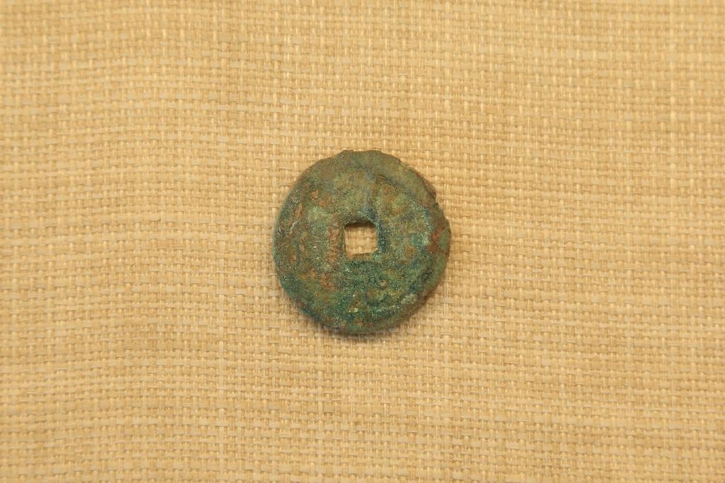 托庫孜薩來(唐王城)遺址發(fā)掘出土并展出的乾元重寶。(賀浩攝)