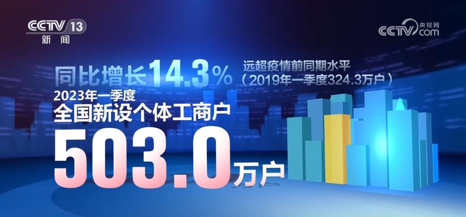 央視網(wǎng)消息:市場監(jiān)管總局5月22日發(fā)布最新數(shù)據(jù)顯示,2023年一季度,全國新設(shè)個(gè)體工商戶503.0萬戶,同比增長14.3%,遠(yuǎn)超疫情前同期水平。