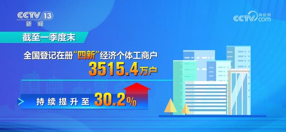 近年來,隨著新技術(shù)、新產(chǎn)業(yè)、新業(yè)態(tài)、新模式的蓬勃發(fā)展,網(wǎng)絡(luò)直播、微商電商等“新個(gè)體經(jīng)濟(jì)”不斷涌現(xiàn),為我國經(jīng)濟(jì)轉(zhuǎn)型升級(jí)注入了新的活力。截至一季度末,全國登記在冊“四新”經(jīng)濟(jì)個(gè)體工商戶3515.4萬戶,總量占比由2019年的24.9%持續(xù)提升至30.2%。