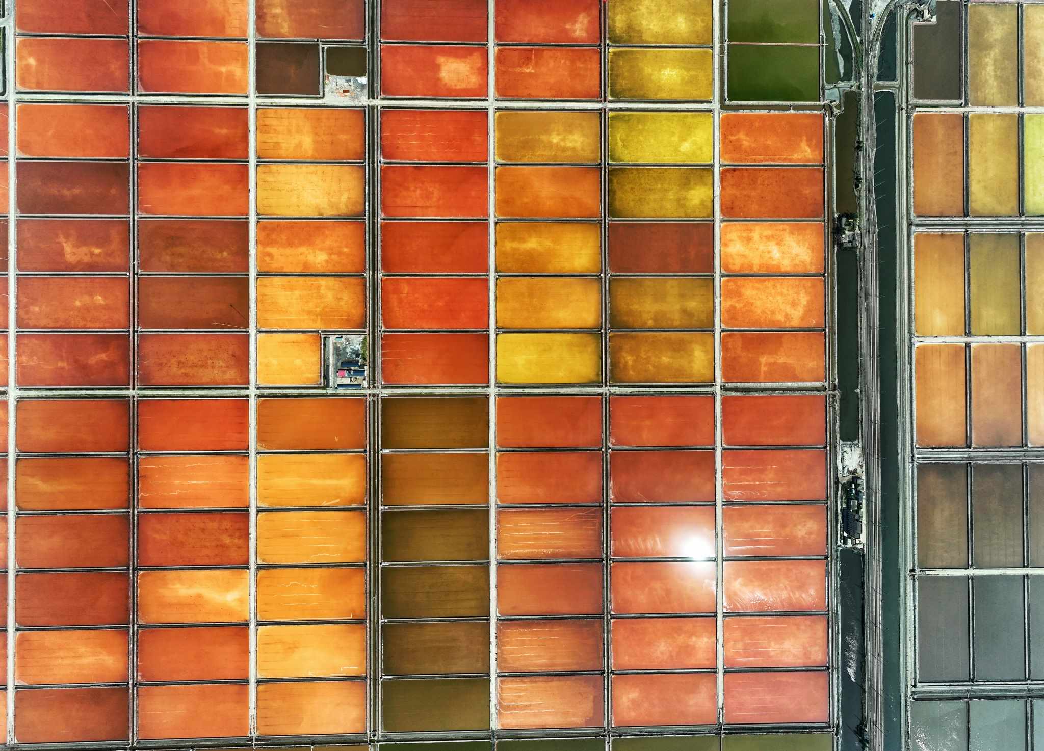 2023年5月22日,天津,位于渤海之濱的長蘆漢沽鹽場色塊分明,俯瞰如大地調(diào)色盤。視覺中國