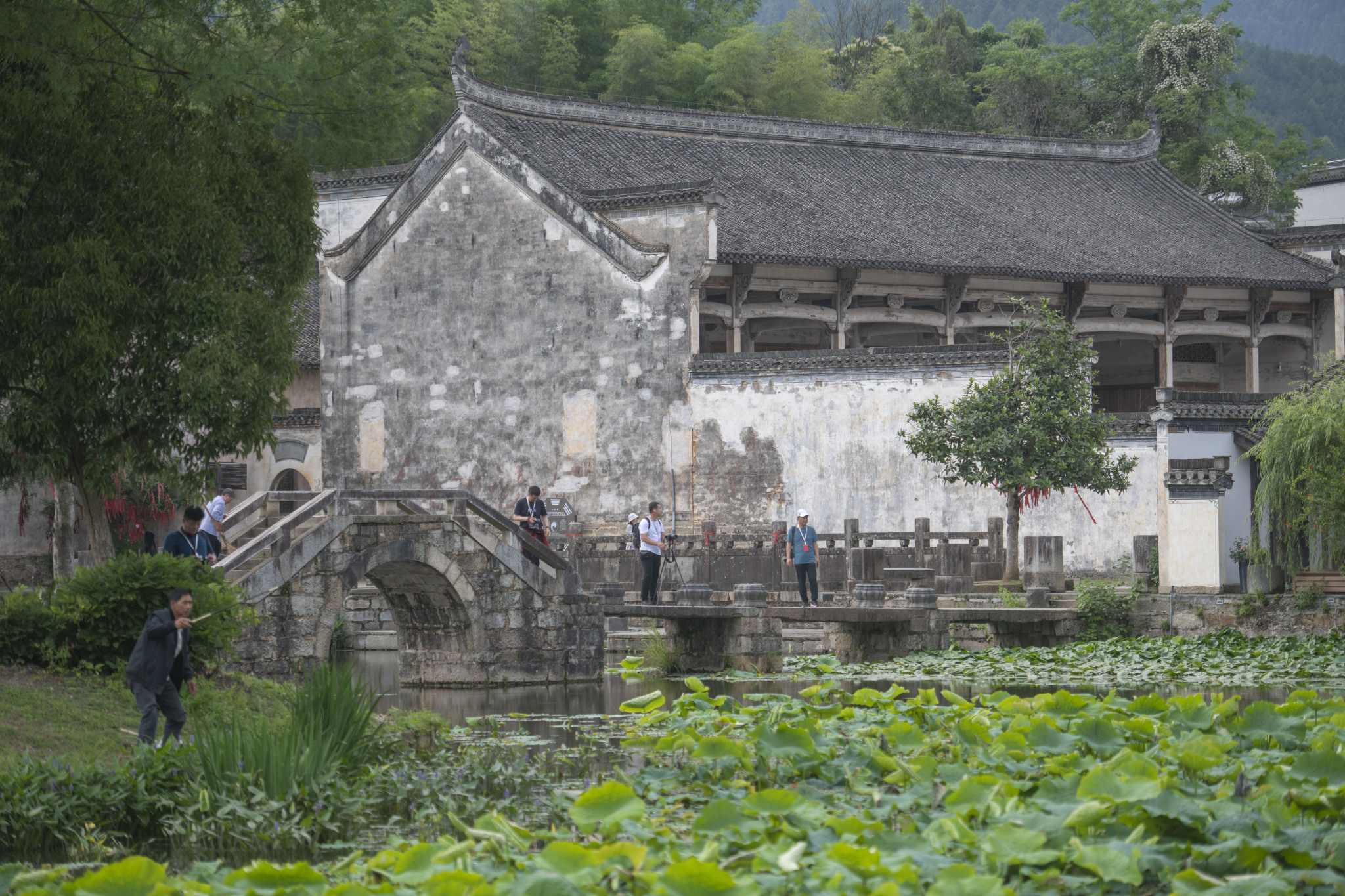 2023年5月26日,安徽黃山,徽州區(qū)呈坎村綠樹成蔭碧水蕩漾。視覺中國
