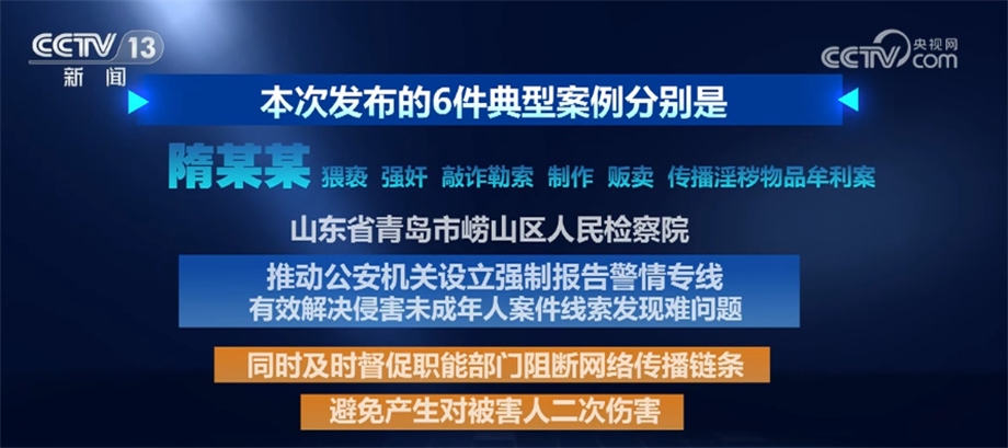 隋某某猥褻、強(qiáng)奸、敲詐勒索、制作、販賣、傳播淫穢物品牟利案。山東省青島市嶗山區(qū)人民檢察院推動(dòng)公安機(jī)關(guān)設(shè)立強(qiáng)制報(bào)告警情專線,有效解決侵害未成年人案件線索發(fā)現(xiàn)難問(wèn)題。同時(shí),及時(shí)督促職能部門阻斷網(wǎng)絡(luò)傳播鏈條,避免產(chǎn)生對(duì)被害人二次傷害。