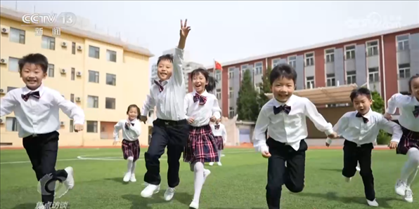 為了防止孩子過早地戴上“小眼鏡”、成為“小胖墩”,讓孩子擁有健康的體魄,近幾年,國家陸續(xù)采取了一系列具體的舉措。比如鼓勵基礎教育階段學校每天開設一節(jié)體育課,著力保障學生每天校內、校外各一個小時體育活動時間。而在“雙減”政策實施后,許多學校也按照要求在課后給學生提供文藝、體育等延時服務。在北京市海淀區(qū)實驗小學九一分校,孩子們每天一節(jié)體育課,再加上上下午的課間操和大課間的體育鍛煉等等,一天之中孩子們的運動時間大約在80分鐘以上。