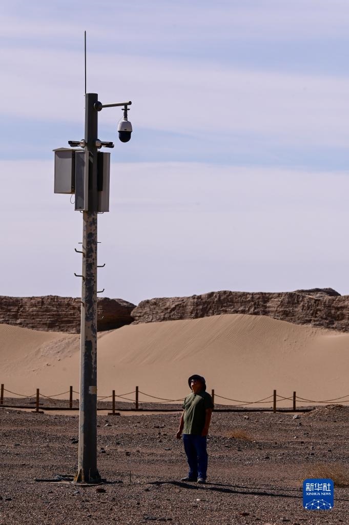6月2日,額濟(jì)納旗文物保護(hù)中心工作人員在黑城遺址察看文保監(jiān)控設(shè)備工作情況。