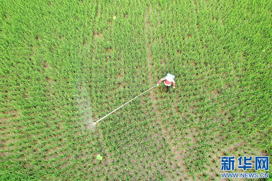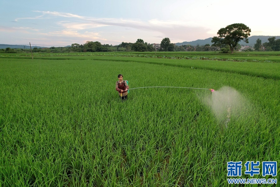 近日,在江西省撫州市廣昌縣,3.4萬(wàn)多畝早稻正逐步進(jìn)入分蘗期,稻田里綠油油一片,禾苗根壯、長(zhǎng)勢(shì)喜人。農(nóng)民正忙著噴灑農(nóng)藥,進(jìn)行防治病蟲害作業(yè),為夏糧豐產(chǎn)豐收打下基礎(chǔ)。(危仁鵬 徐維棟)