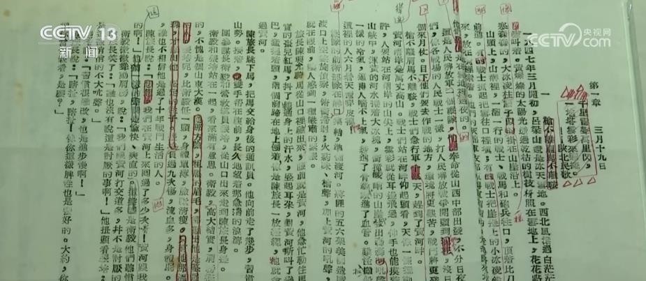 展臺(tái)里這份《紅巖》手稿上,作者和編輯密密麻麻的修改痕跡,無論是章節(jié)的移動(dòng)和調(diào)整,還是用詞的字斟句酌,每一處標(biāo)點(diǎn)的修改加工,都能體現(xiàn)創(chuàng)作者的智慧和嚴(yán)謹(jǐn)。