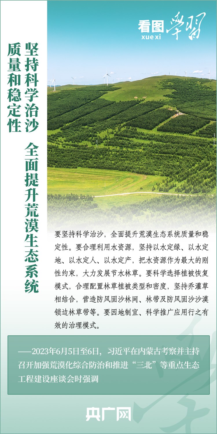6月5日至6日,習(xí)近平總書(shū)記來(lái)到內(nèi)蒙古自治區(qū)巴彥淖爾市,深入自然保護(hù)區(qū)、現(xiàn)代農(nóng)業(yè)示范園區(qū)、林場(chǎng)、水利部門(mén)等考察調(diào)研,主持召開(kāi)加強(qiáng)荒漠化綜合防治和推進(jìn)“三北”等重點(diǎn)生態(tài)工程建設(shè)座談會(huì)并發(fā)表重要講話。總書(shū)記強(qiáng)調(diào),要勇?lián)姑?、不畏艱辛、久久為功,努力創(chuàng)造新時(shí)代中國(guó)防沙治沙新奇跡,把祖國(guó)北疆這道萬(wàn)里綠色屏障構(gòu)筑得更加牢固,在建設(shè)美麗中國(guó)上取得更大成就。一起來(lái)學(xué)習(xí)!