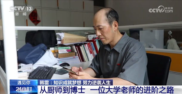 今年42歲的大學(xué)老師韓雷講述自己17年的求學(xué)故事:從廚師到自考專(zhuān)科、本科再到考取南開(kāi)大學(xué)博士。