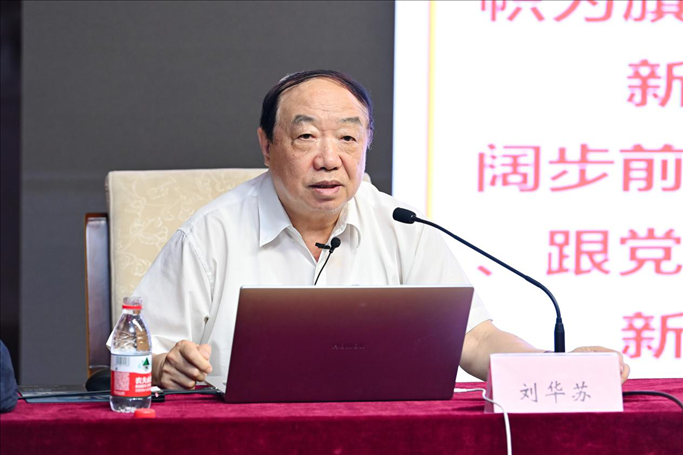 觀展后,參會(huì)嘉賓與管理學(xué)院200多名學(xué)生黨員及入黨積極分子在南院報(bào)告廳,共同開展“同上一堂主題教育專題黨課,在黨的旗幟下勝利前進(jìn)”黨課活動(dòng)。此次講座由管理學(xué)院黨委書記張玲娜主持,由北京新四軍暨華中抗日根據(jù)地研究會(huì)原副會(huì)長劉華蘇主講。
