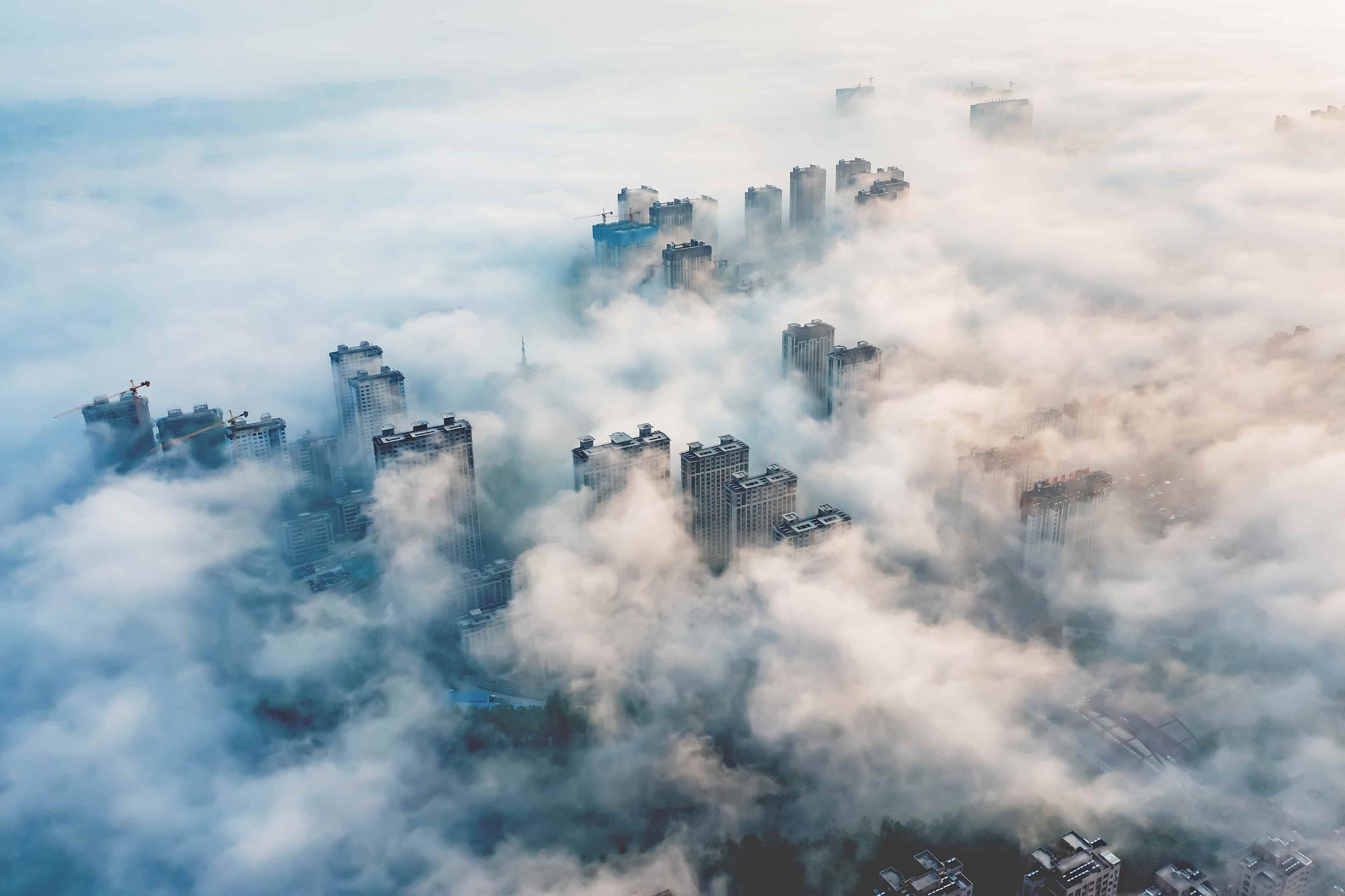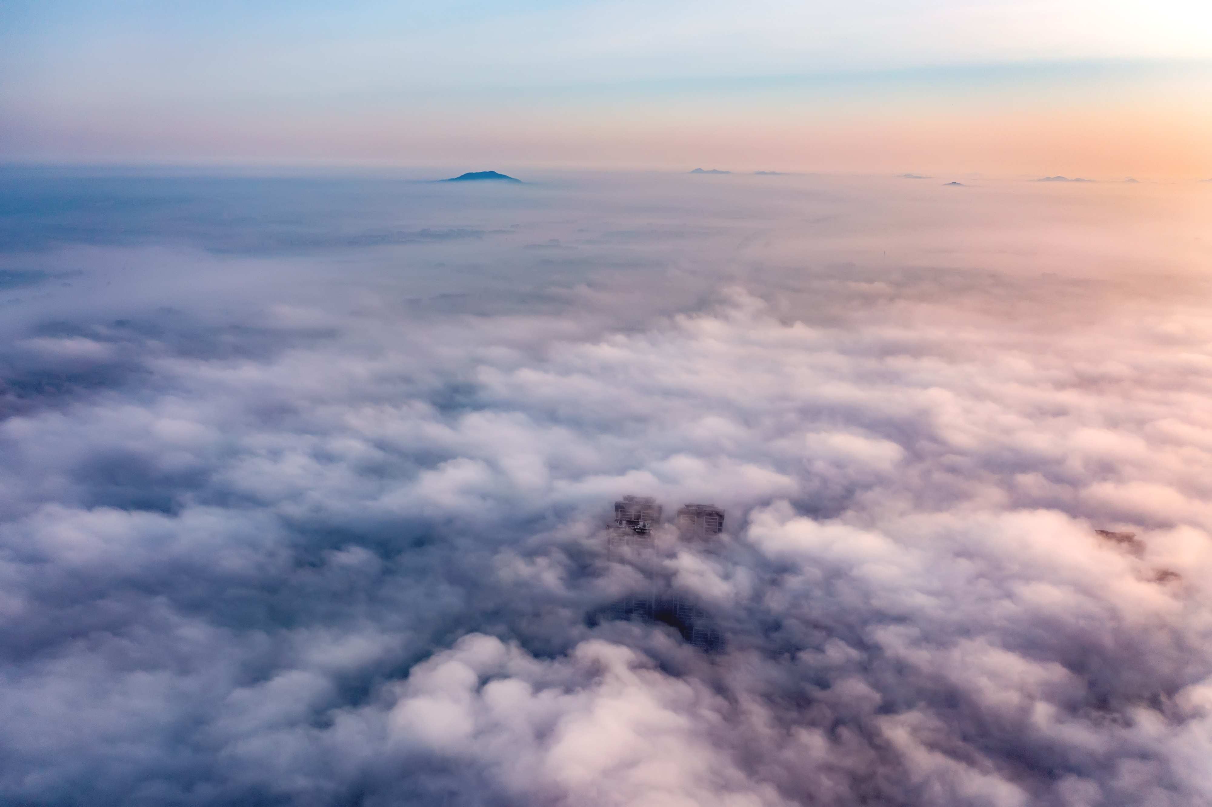 2023年6月11日,江蘇連云港東海縣,城市上空云霧繚繞,蔚為壯觀。 視覺(jué)中國(guó)
