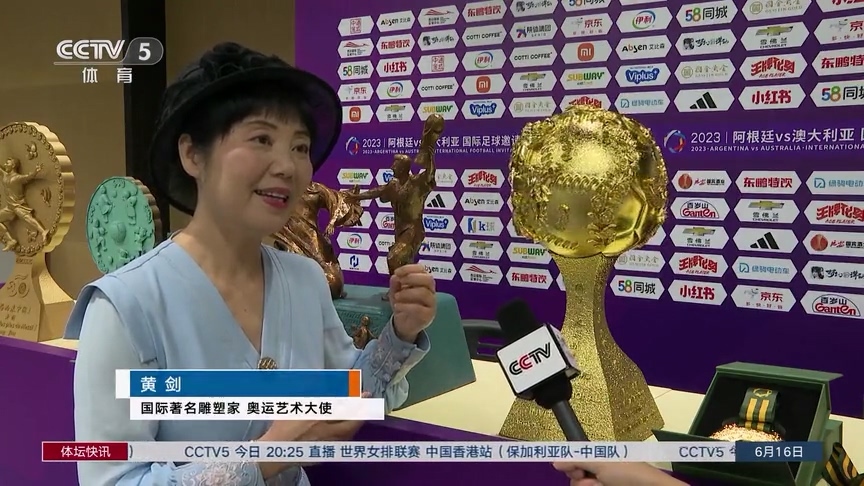 國際著名雕塑家 奧運藝術(shù)大使 黃劍:設計的時候我在想,怎么讓這個紀念杯更加有它的魅力,既有文化內(nèi)涵,又有一種創(chuàng)新魅力。所以我就把它做成了一個音樂轉(zhuǎn)動的雕塑紀念杯,想讓球王梅西拿著有一種珍藏的心。