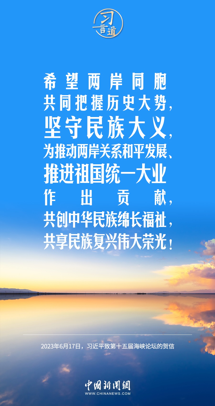 6月17日,中共中央總書記、國家主席習近平向第十五屆海峽論壇致賀信。習近平強調——