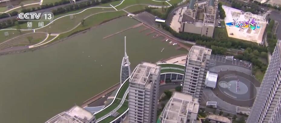 總臺(tái)記者 梁燁:但是要說(shuō)溫州什么運(yùn)動(dòng)最熱鬧,那就肯定是龍舟了。我們現(xiàn)在看到的是溫州龍舟運(yùn)動(dòng)中心,這里是全亞洲最高標(biāo)準(zhǔn)的龍舟賽場(chǎng)。我們從空中俯瞰,整棟樓看起來(lái)非常狹長(zhǎng),并且高低起伏猶如山脈,就好像是一條龍靜臥在水面之上,因此,這幢樓也被稱(chēng)為“龍樓”。比賽時(shí),這里主要作賽事保障用途。緊挨著龍樓的這座,從正面看像是船槳,從側(cè)面看像龍舟的建筑就是舟塔,這也是比賽的終點(diǎn)塔。比賽期間,裁判員們就會(huì)在這里觀看比賽,在這里計(jì)時(shí)計(jì)分。此時(shí)此刻,我們看到水面上正在進(jìn)行演練,他們所劃行的這1200米的賽道到時(shí)候就是龍舟的比賽場(chǎng)地。